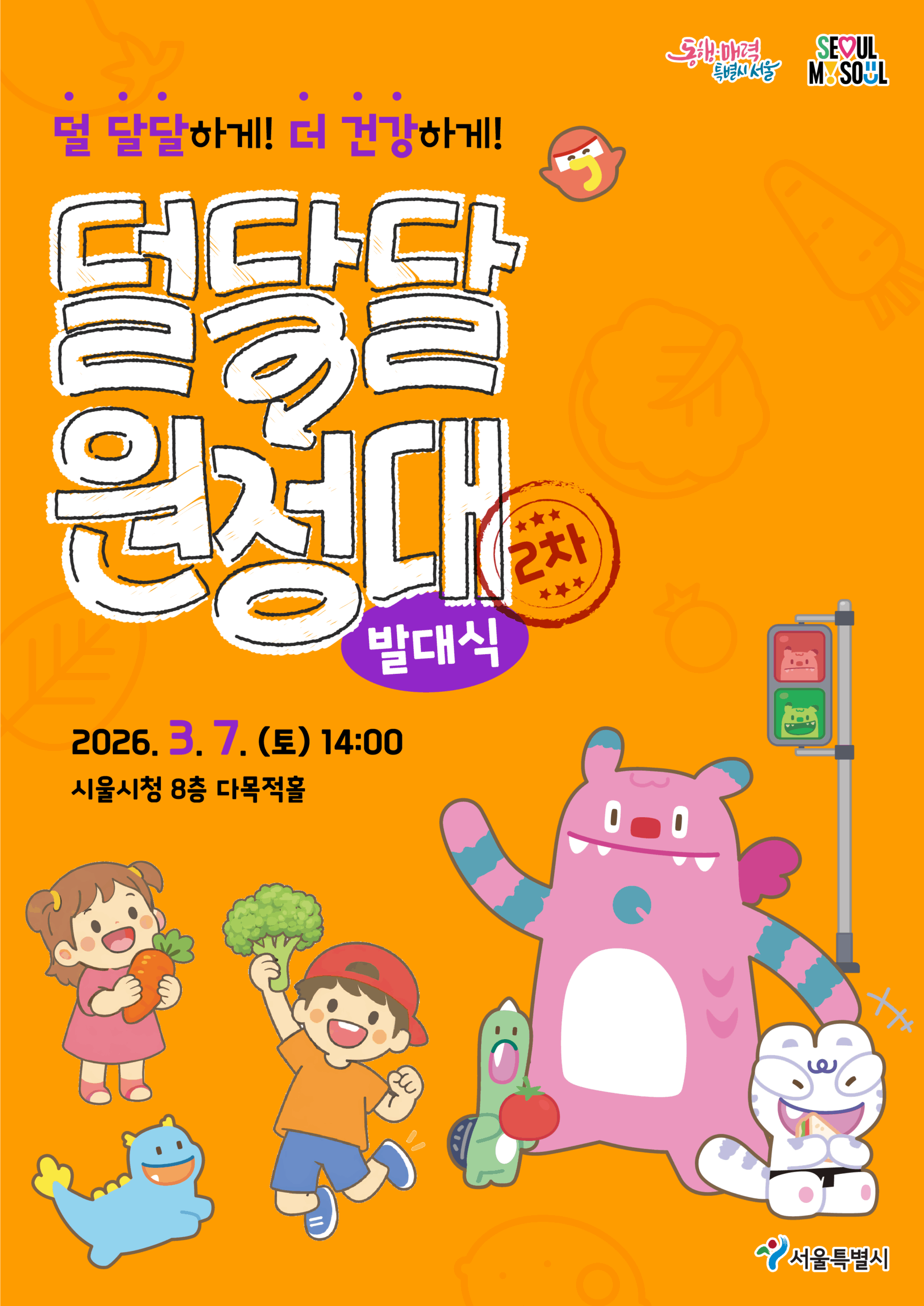 먼저, 시는 작년에 이어 올해에도 당류 과잉섭취 관리 프로그램 ‘덜 달달 원정대’에 참여하는 어린이와 가족 900명을 대상으로 7일 오후 2시 서울시청 8층 다목적홀에서 발대식을 개최한다. 어린이들이 스스로 건강 실천을 다짐하는 의미 있는 출발점이 될 전망이다.